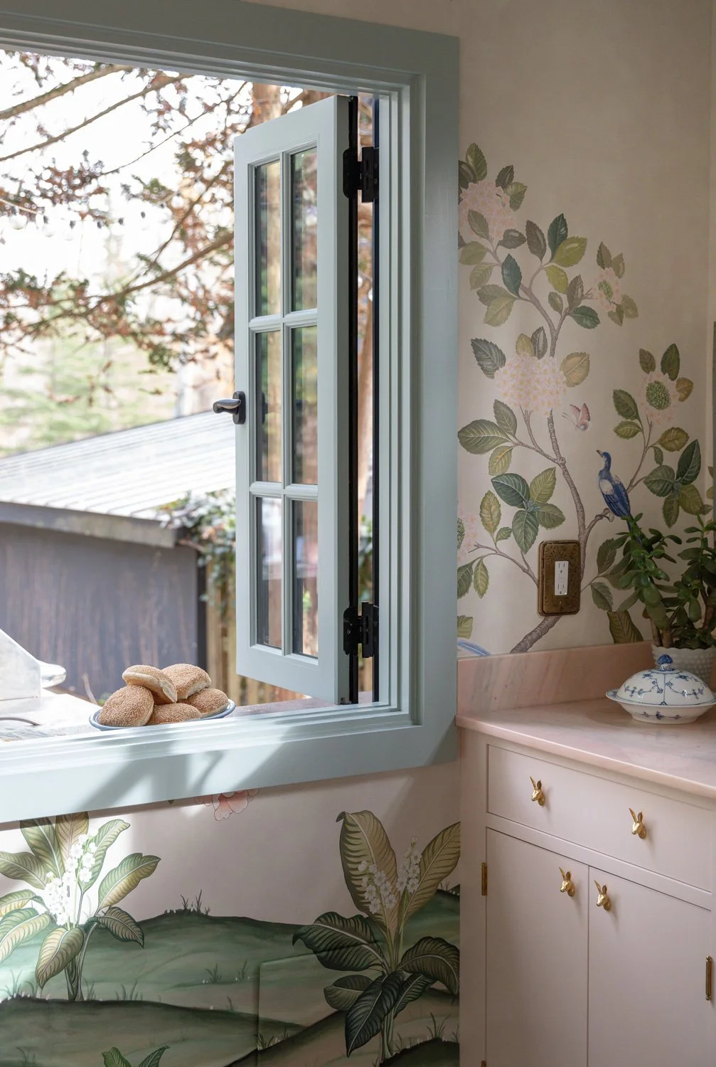 Durable materials were essential to withstand water from the pool, pets, and future children while also ensuring a timeless aesthetic. Locally sourced tiles added a personal touch to the flooring, and a custom mural depicting crows became a focal point in the kitchen area.