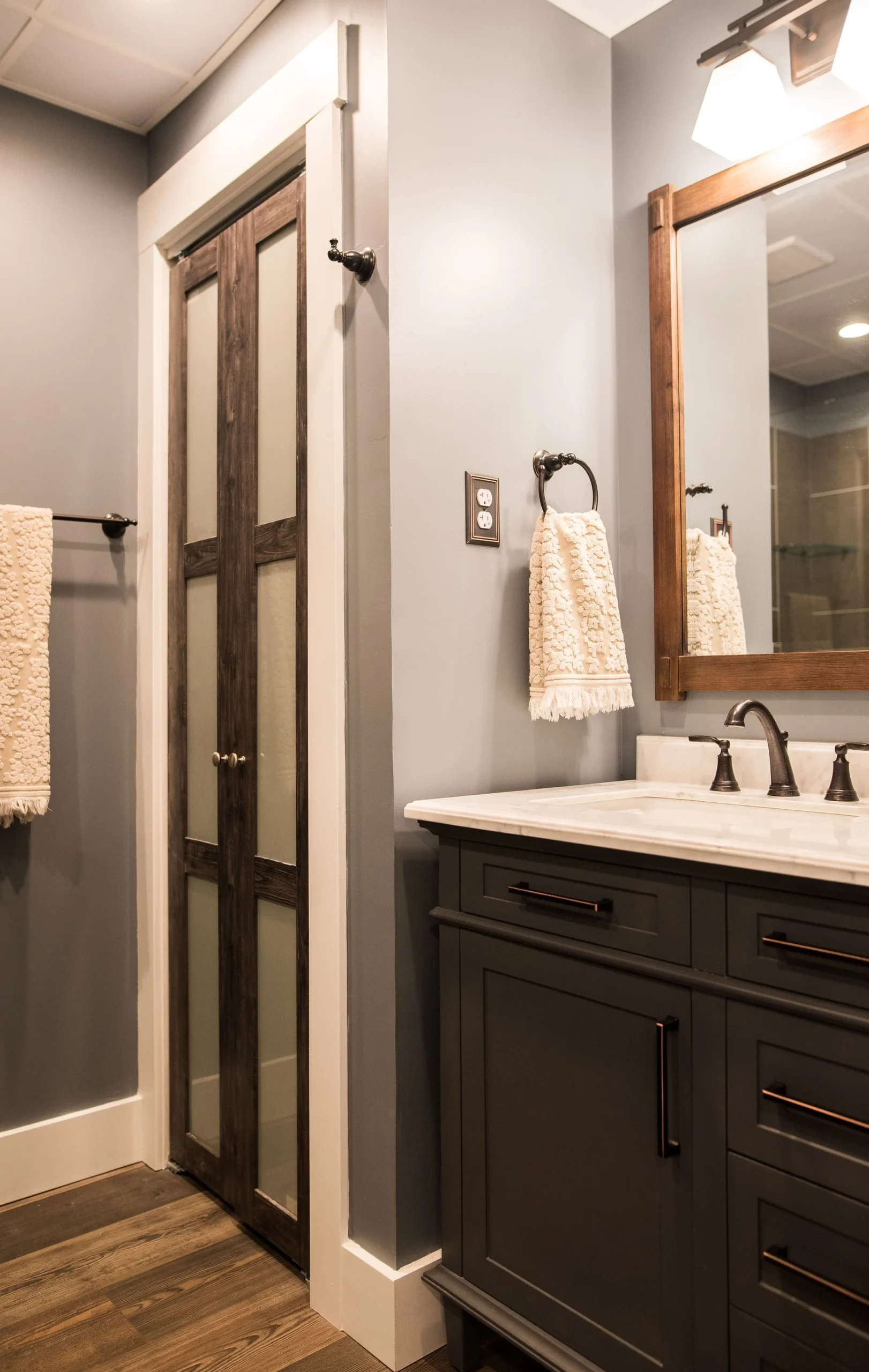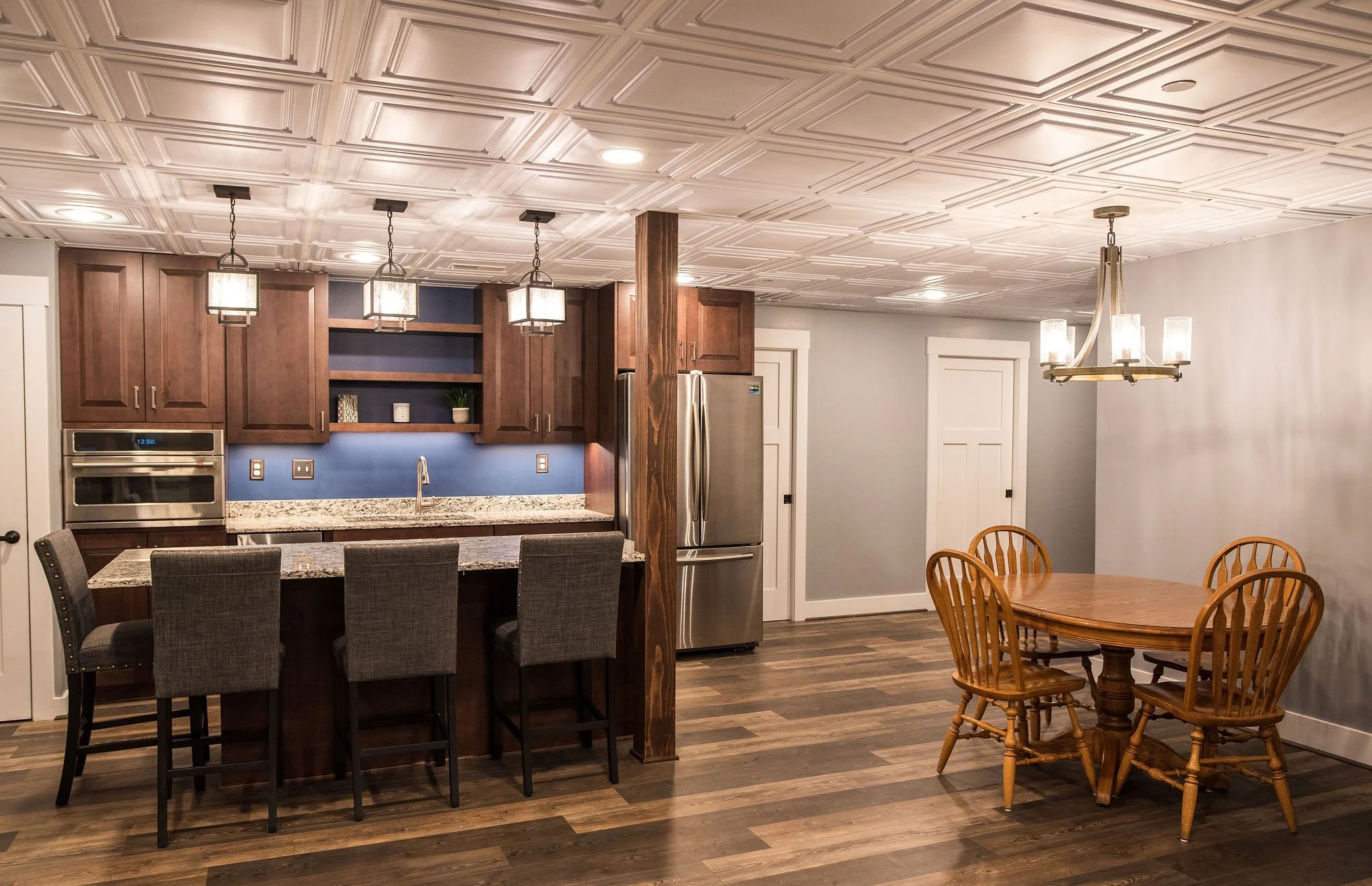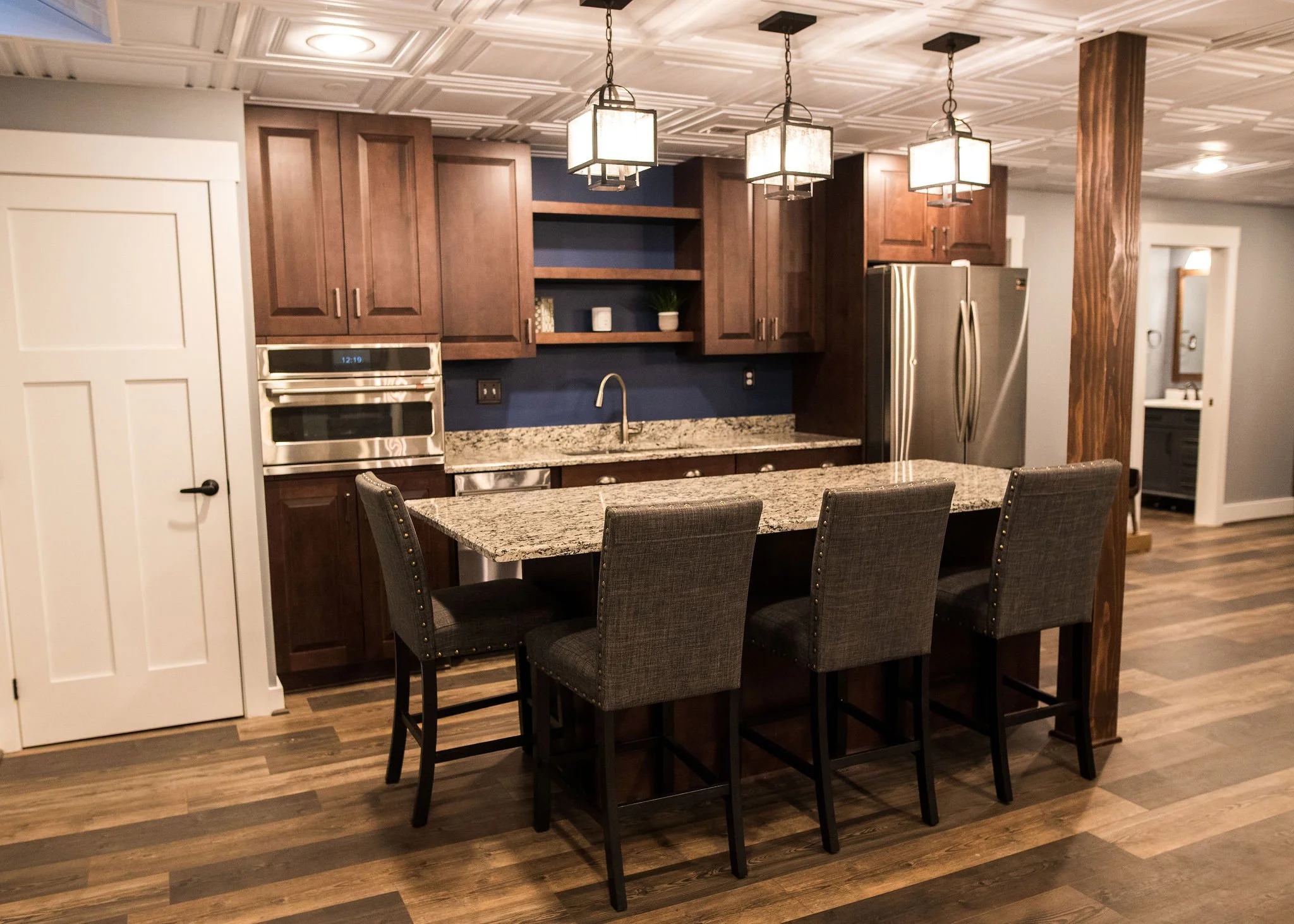 Phase one of our Jamison remodel focused on creating a comfortable and functional basement space for our clients to occupy while renovations were underway in the main areas of their home. This thoughtfully designed lower level includes a fully functional kitchenette, a full bathroom, a cozy lounge area for entertainment, a spacious open playroom for the children, and a dedicated dining area.