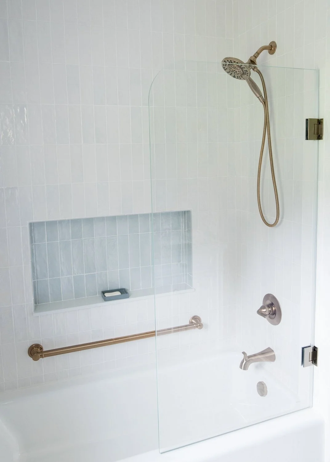 To ensure the space could gracefully serve the homeowners for years to come, we integrated a discreet bath bar within the tub and shower area—merging accessibility with beauty. The result is a room that balances elevated design with practical foresight, creating an inviting and enduring guest space.